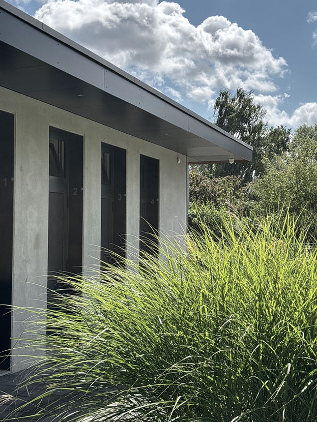 Der Neubau eines Gastraums mit gewerblicher Küche an der bestehenden Minigolfanlage wurde zur Optimierung der Bauzeit aus vorgefertigter Betonteilkonstruktion erstellt. Der an den Spielanlagen orientierte Gastraum überzeugt durch seine großen Glasanteile und dadurch entstehendem Lichteinfall. Die weiten Dachüberstände bieten gerade in den warmen Sommermonaten einen baulichen Wärmeschutz und in den Übergangszeiten ausreichend Unterstand für eine möglichst kurze Spielunterbrechung. Die aus den vorfabrizierten Elementen gewonnenen Sichtbetonwände bieten in Ihrer schlichten und zeitlosen Anmutung die Beständigkeit für eine aufregende Gestaltung der weiteren Oberflächen und Einrichtungsgegenstände.
